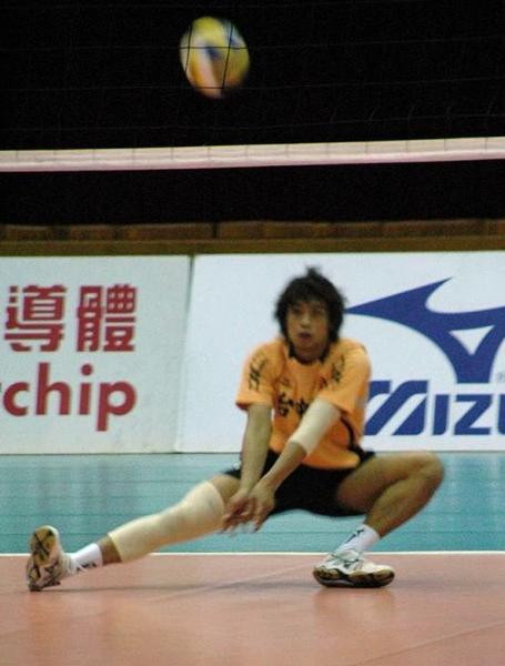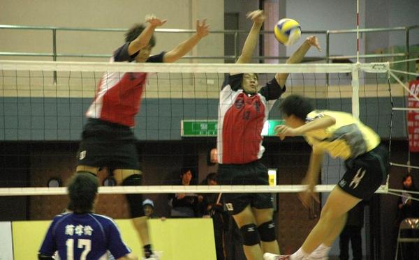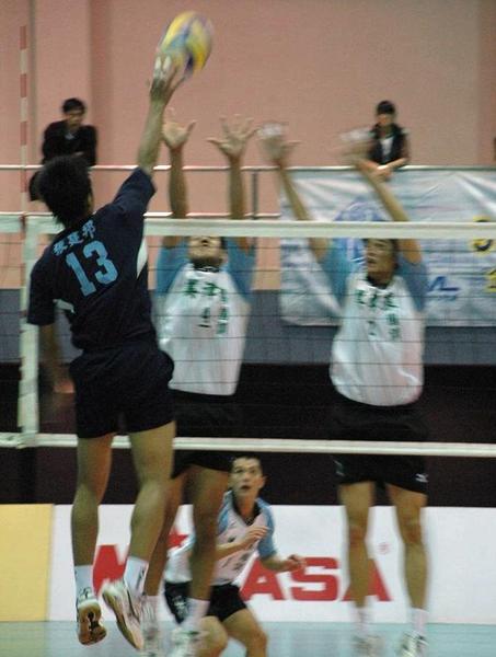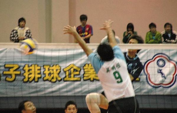 (圖: 群力隊賴慶和四號位攻擊,台電隊李瑞斌.劉耀彰攔網)