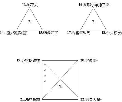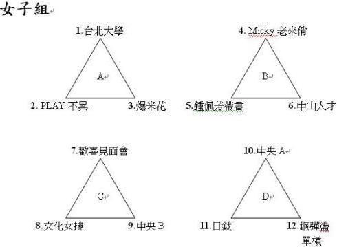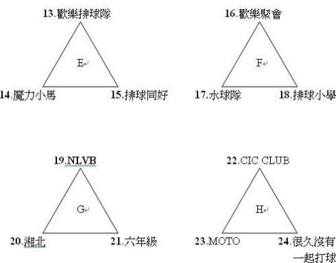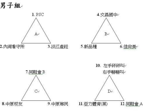 預賽分組名單(四取二、三取一 晉級八強複賽)