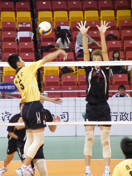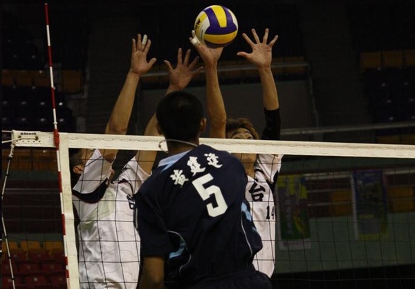 圖:美津濃黃建逢四號位攻擊遭遇台電雙人攔網