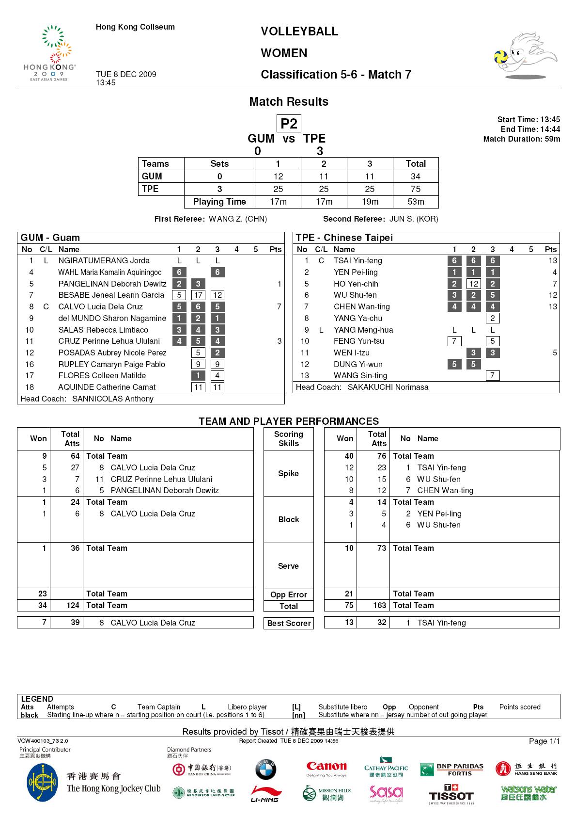 2009香港東亞運女排賽事接近尾聲,中華女排在預賽連續敗給日本、中國之後,於8日下午對上實力較弱的關島隊,最後花費不到一小時就以直落三(25:12、11、11)輕取關島,本屆東亞運以第五名作收。