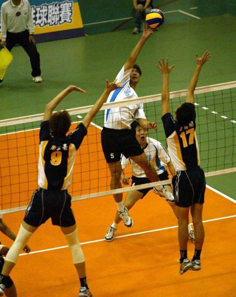 圖:國訓洪榮宗移位攻擊讓台電黃建逢、江天祐攔網不及/林嘉欣攝影