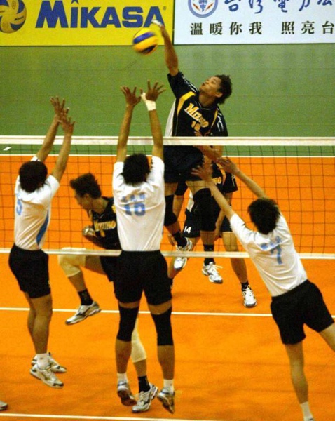 圖:易樺黃世豪攻擊突破MIZUNO三人攔網/民生@報林嘉欣攝影