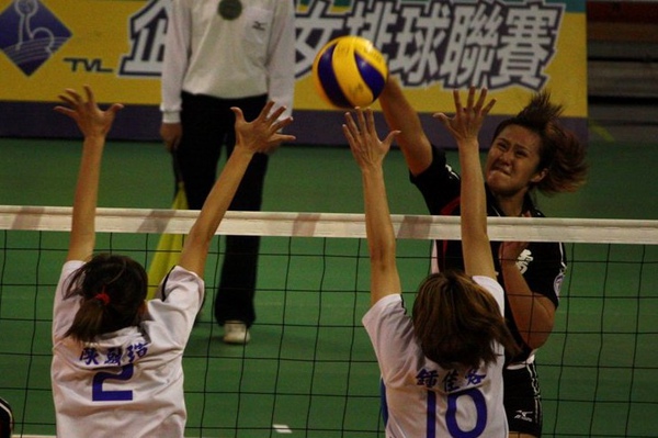 圖:台電吳可柔網前攻擊遭遇conti雙人攔網/排協提供