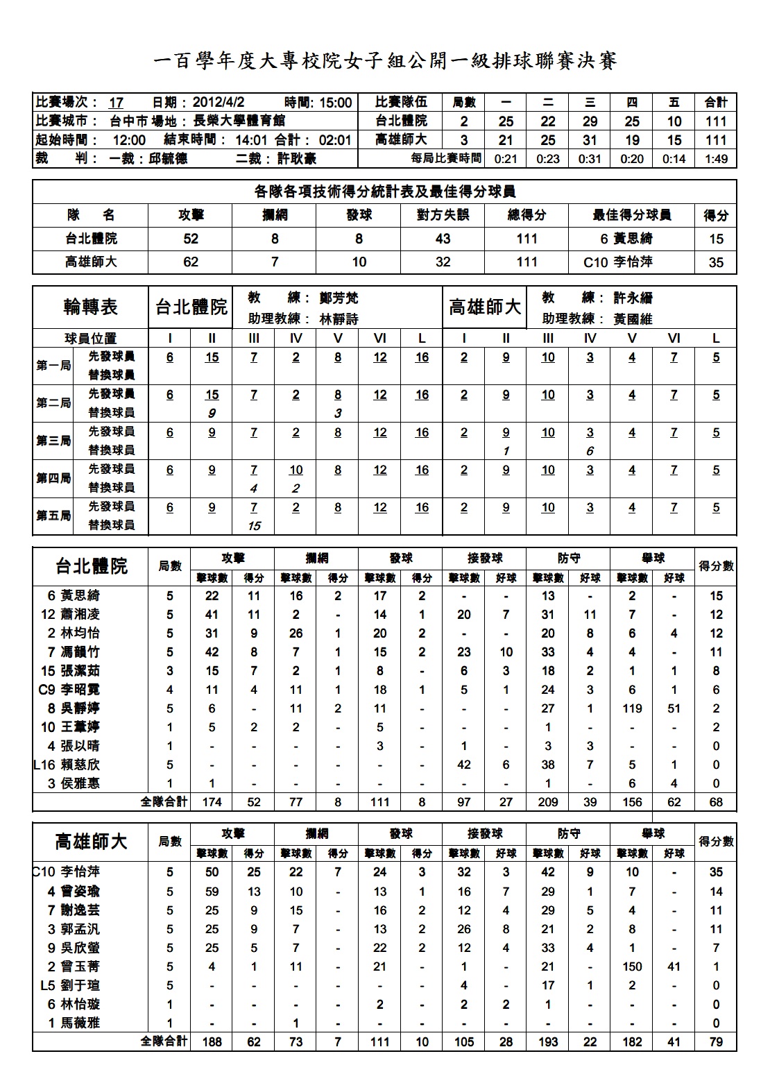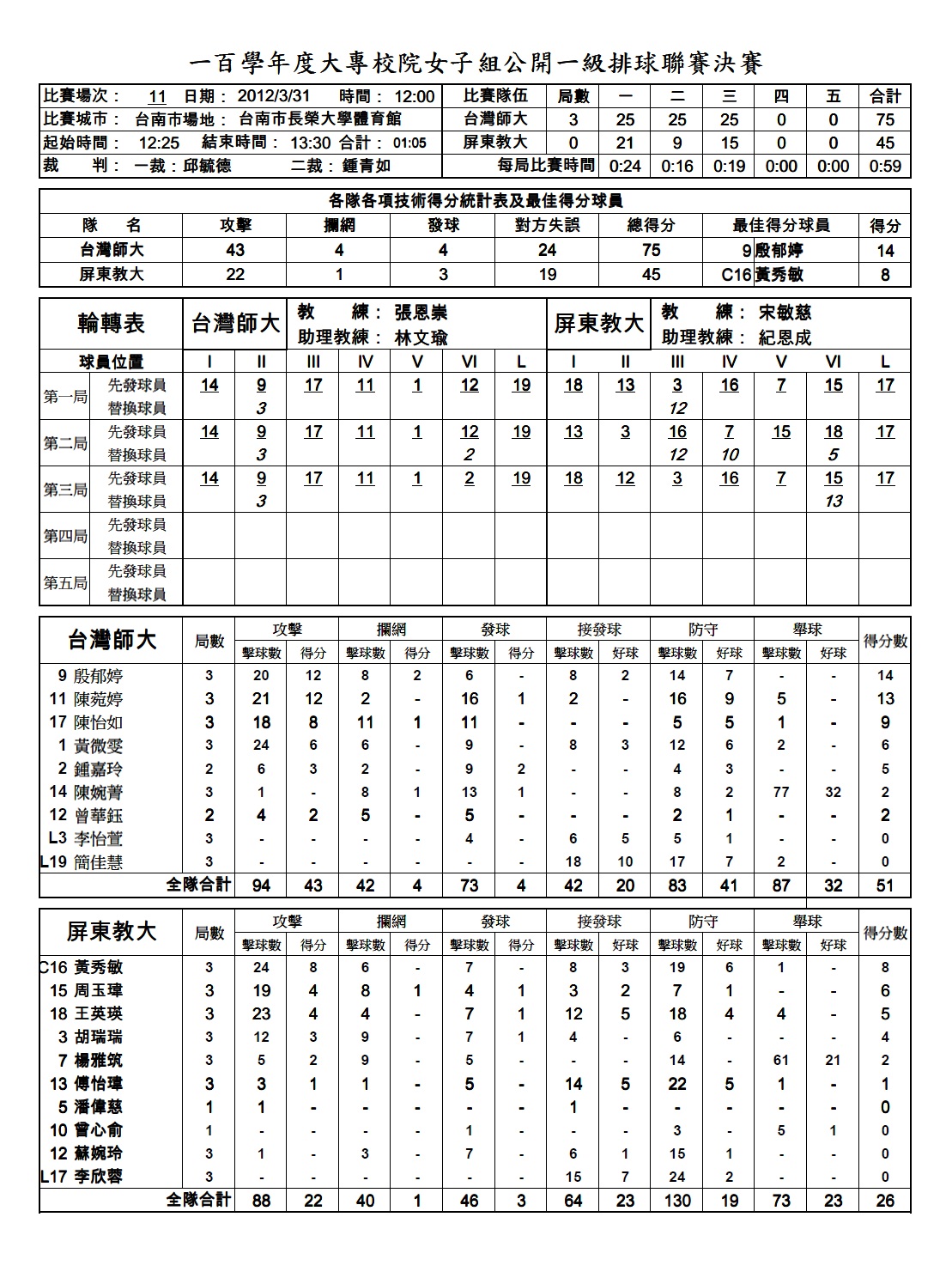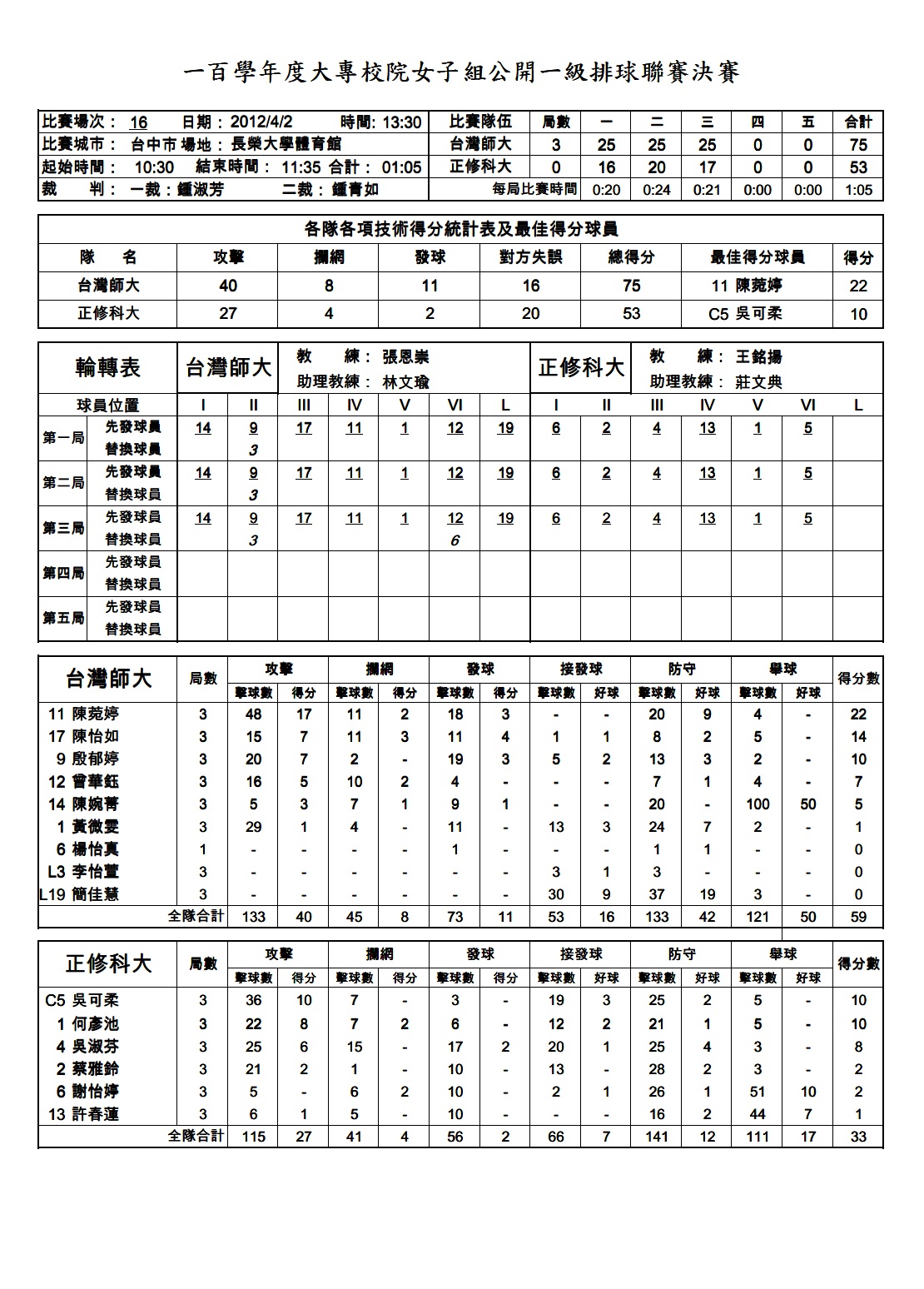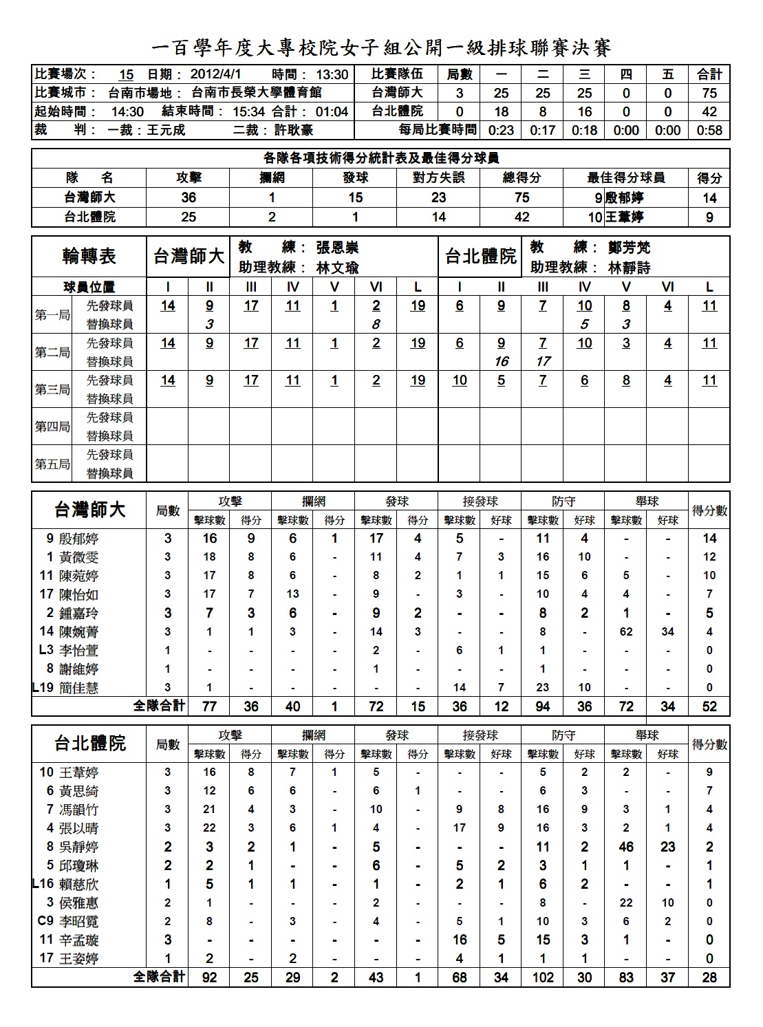 複賽第2-複賽第3 台北體院-高雄師大 |