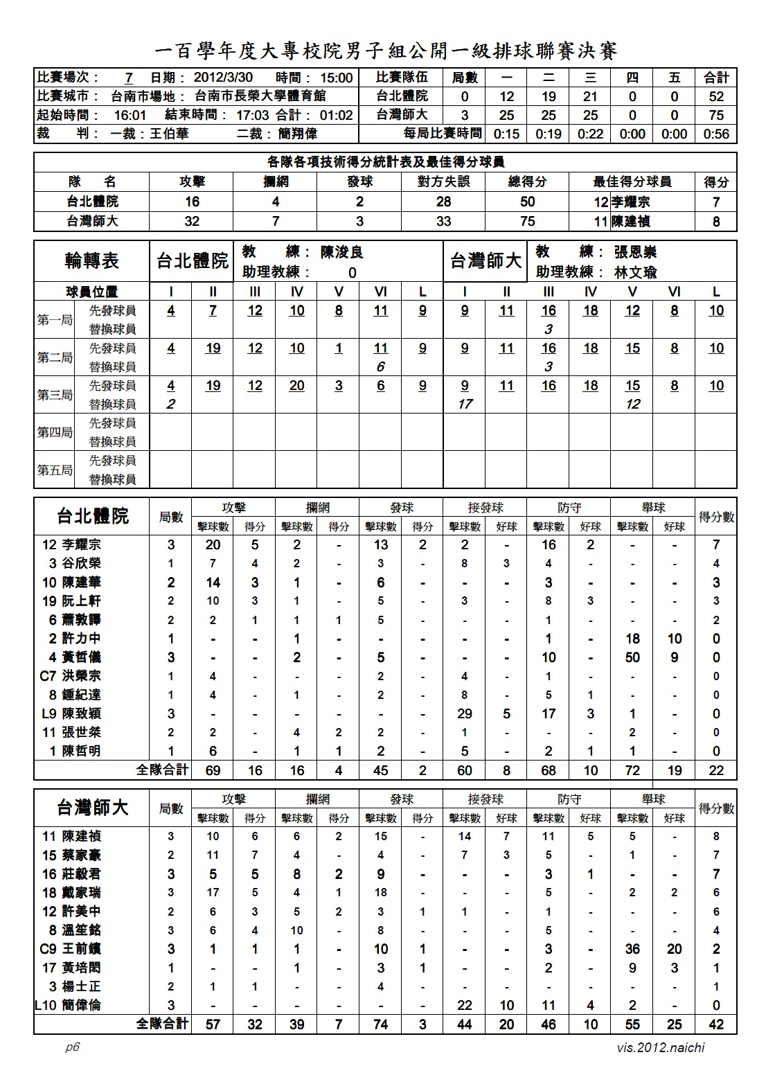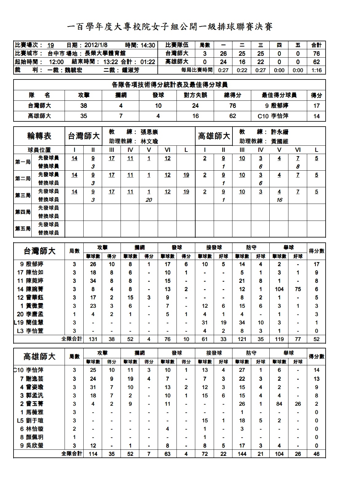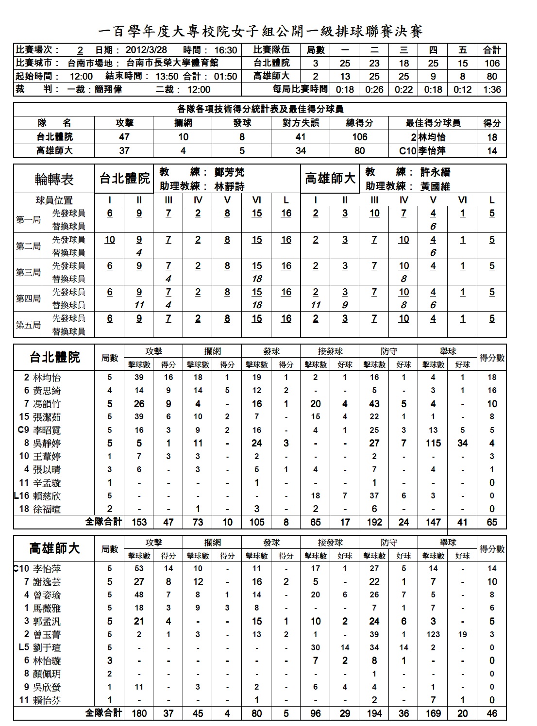 複賽第2-複賽第3 台北體院-高雄師大 |