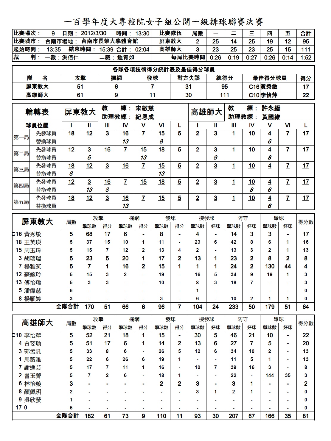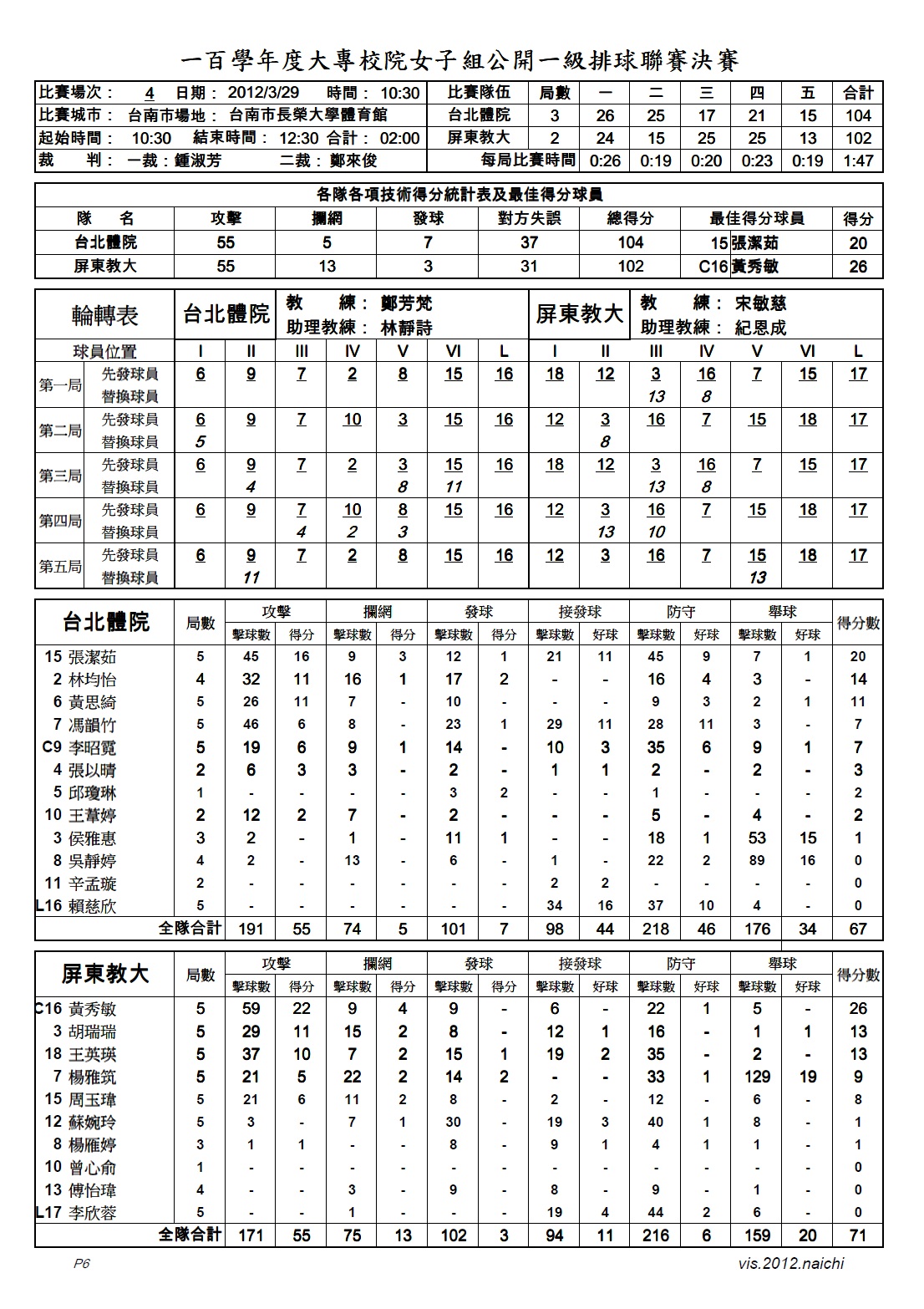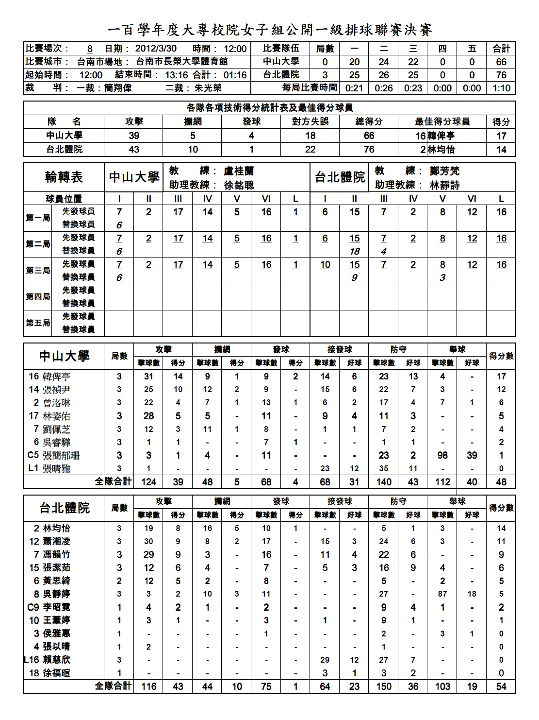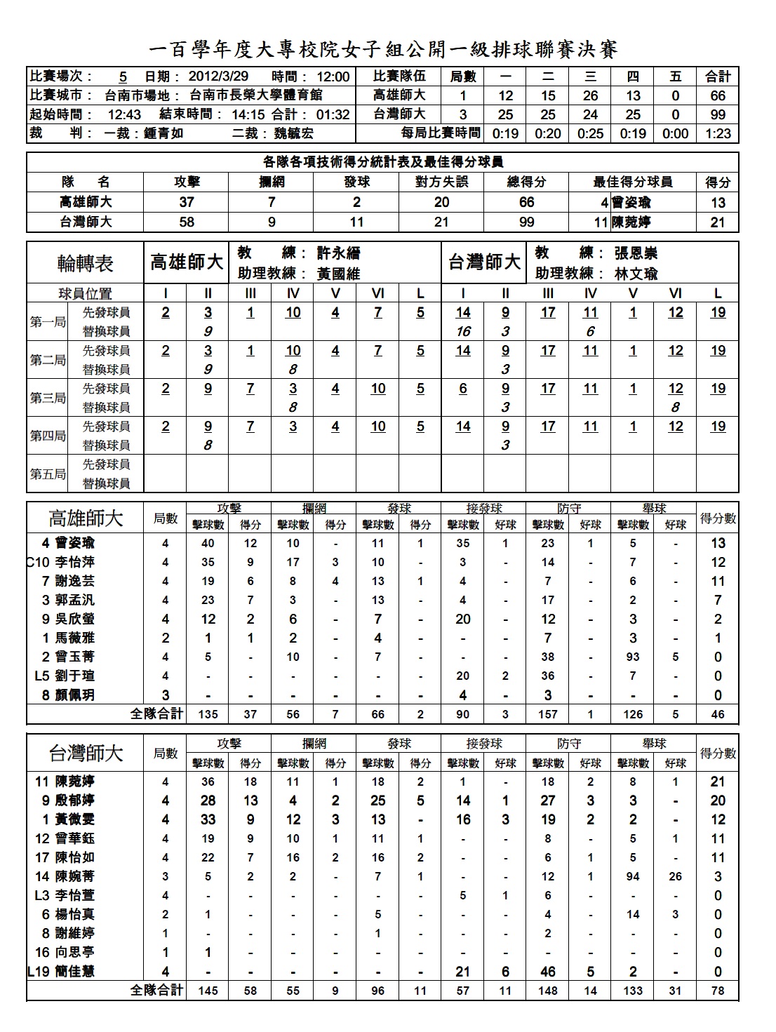 複賽第2-複賽第3 台北體院-高雄師大 |
