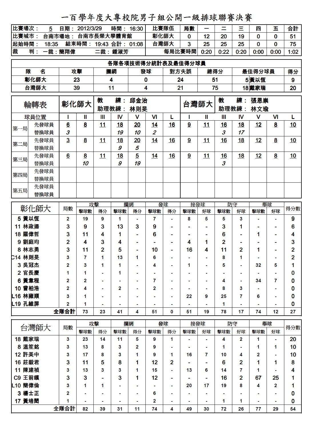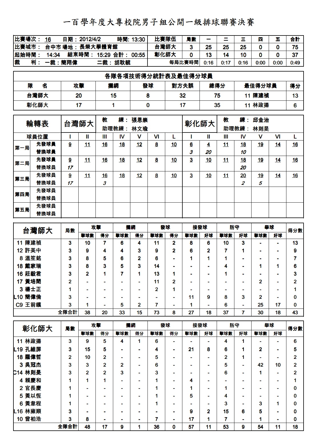 複賽第1-複賽第4 台灣師大-彰化師大 |