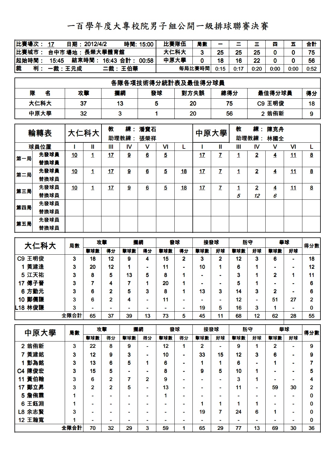 複賽第2-複賽第3 大仁科大-中原大學 |