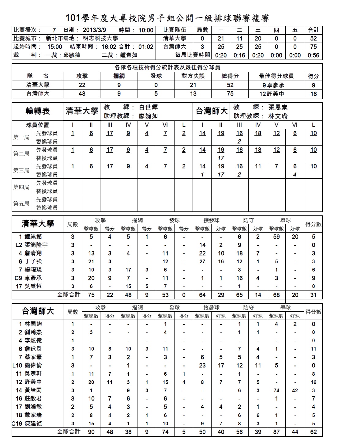 清華大學 0勝5敗 北市教大 0勝5敗