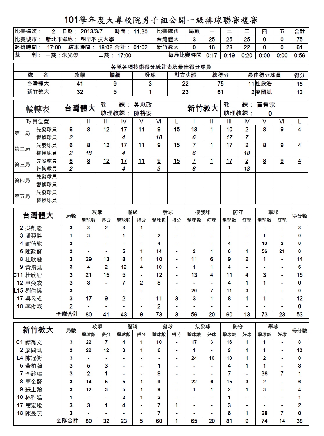男排季軍戰 中原大學-台北體院 |