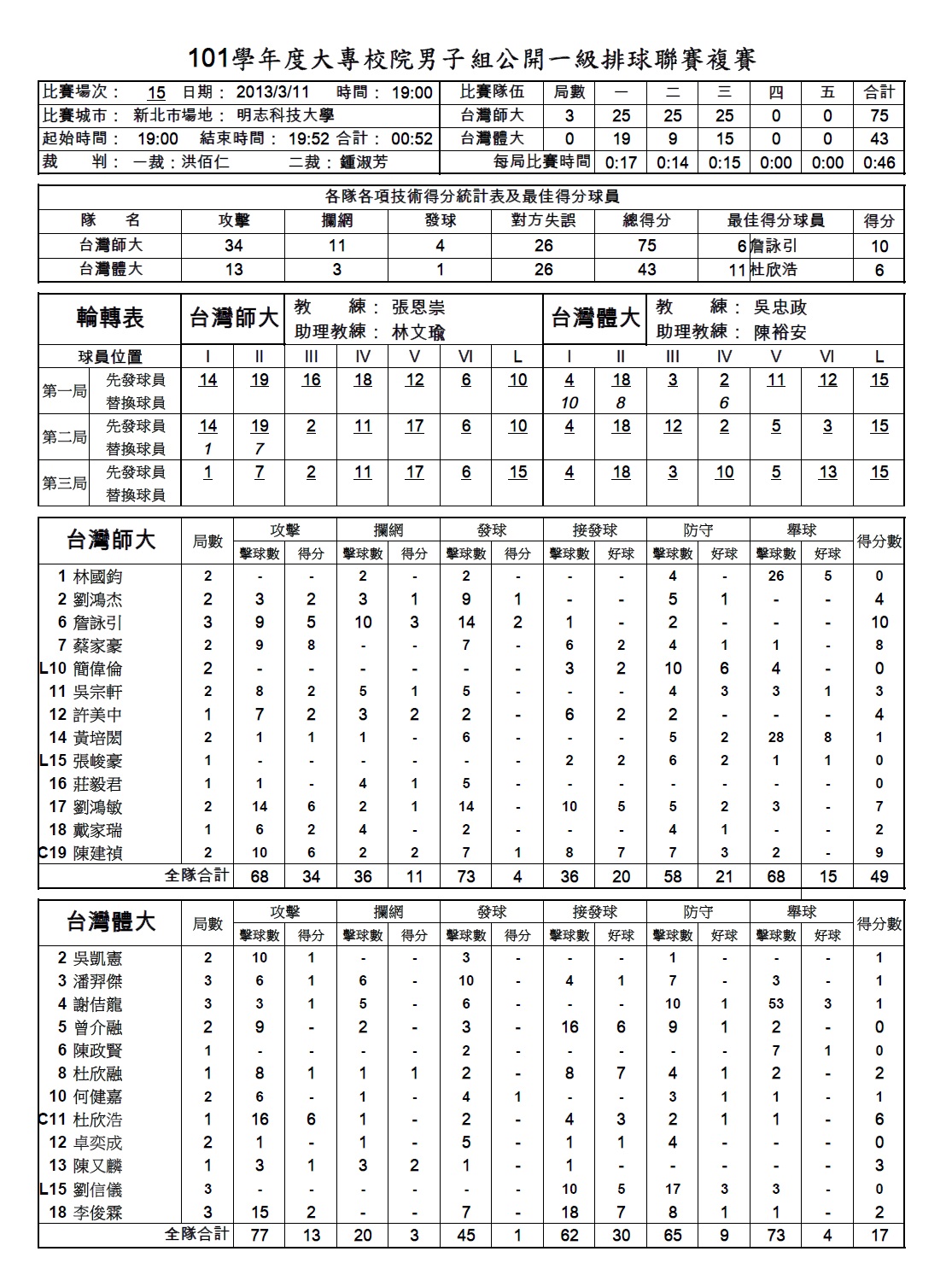 男排冠軍戰 台灣師大-台灣體大 |