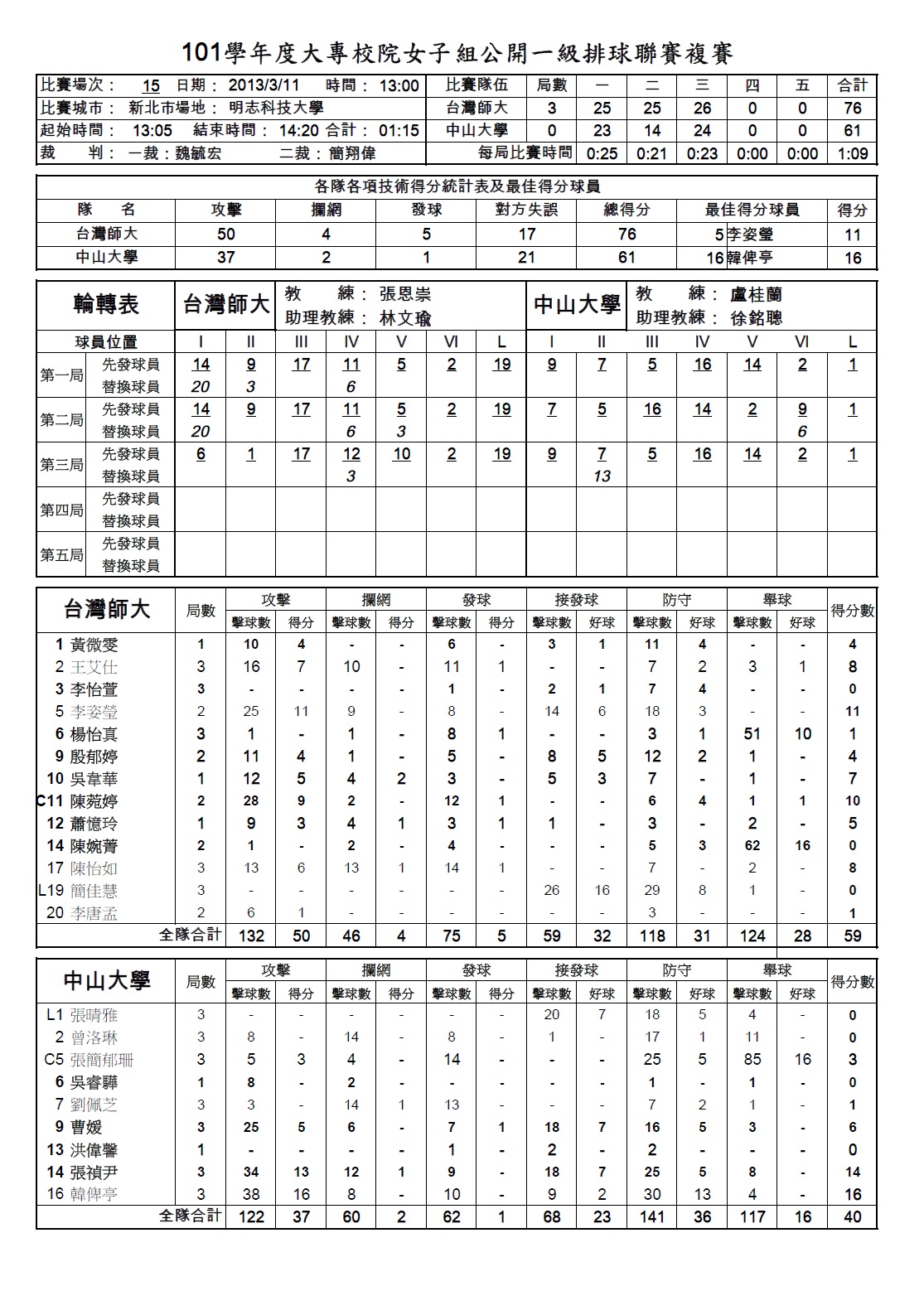 女排冠軍戰 台灣師大-中山大學 |